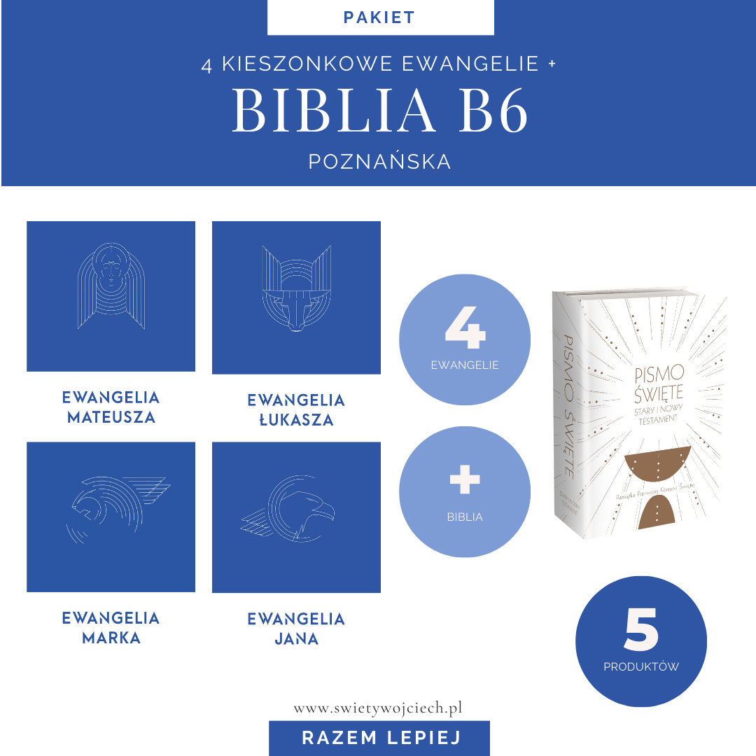 Jednotomowa edycja Pisma Świętego, tzw. Biblia Poznańska, przyjęta z powszechnym uznaniem dla pracy autorów przekładu oraz wstępów i komentarzy. Do tego: