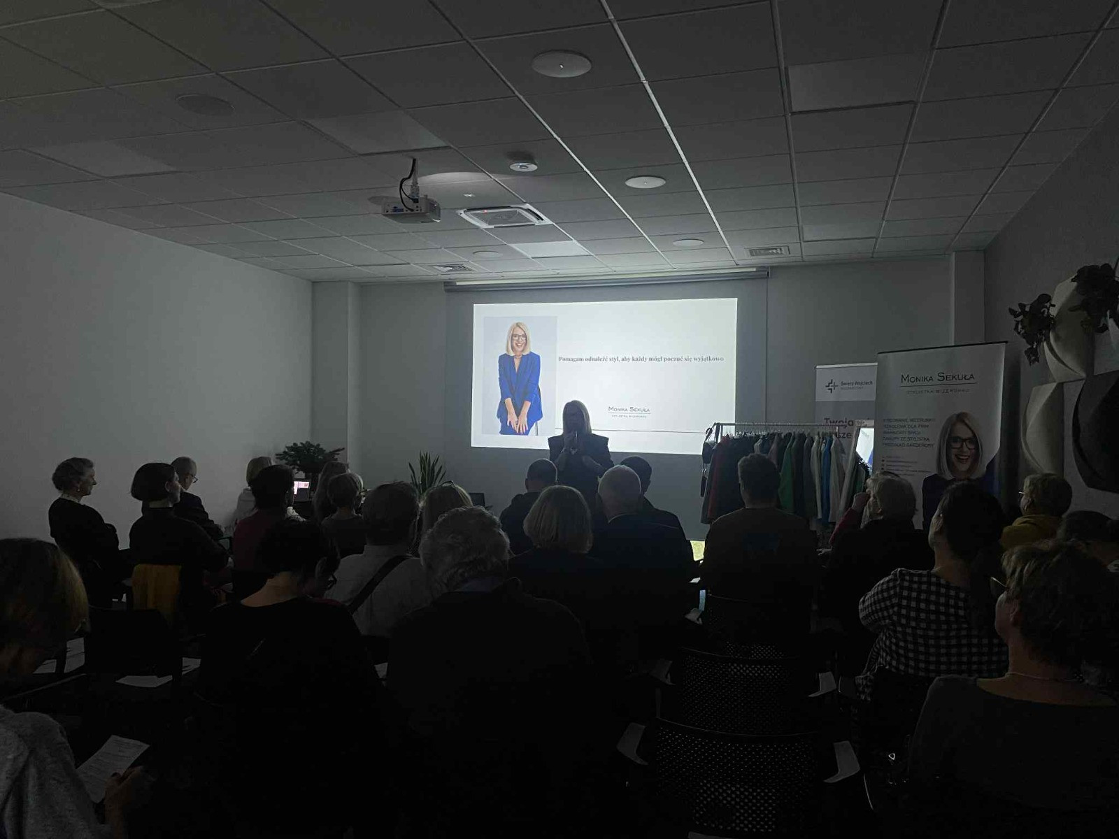 Druga część spotkania, to wykład i warsztaty „Moda nie zna wieku”, prowadzone przez Monikę Sekułę, stylistkę wizerunku. Tematem była nie tylko moda – dyskutowano także o akceptacji siebie, wpływie wyglądu na pewność siebie oraz o tym, jak wypracować własny styl niezależnie od wieku, jak budować spójną garderobę. Pani Monika pokazała triki stylizacyjne, omówiła także dobór dodatków i kolorów — czyli jak świadomie podkreślać swoją tożsamość i piękno w każdej fazie życia.