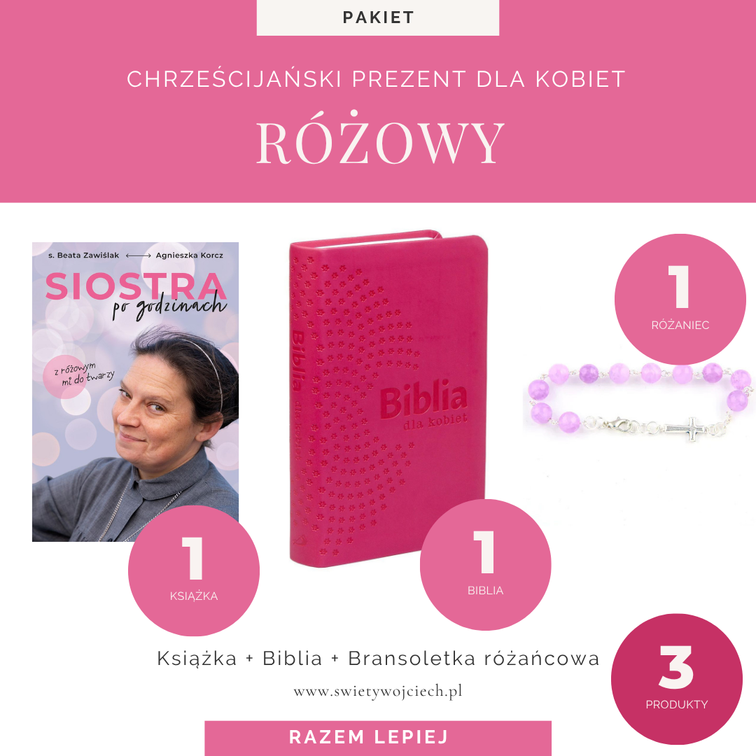 Różowy Katolicki Prezent dla Kobiety (Książka + Biblia + Bransoletka różańcowa)