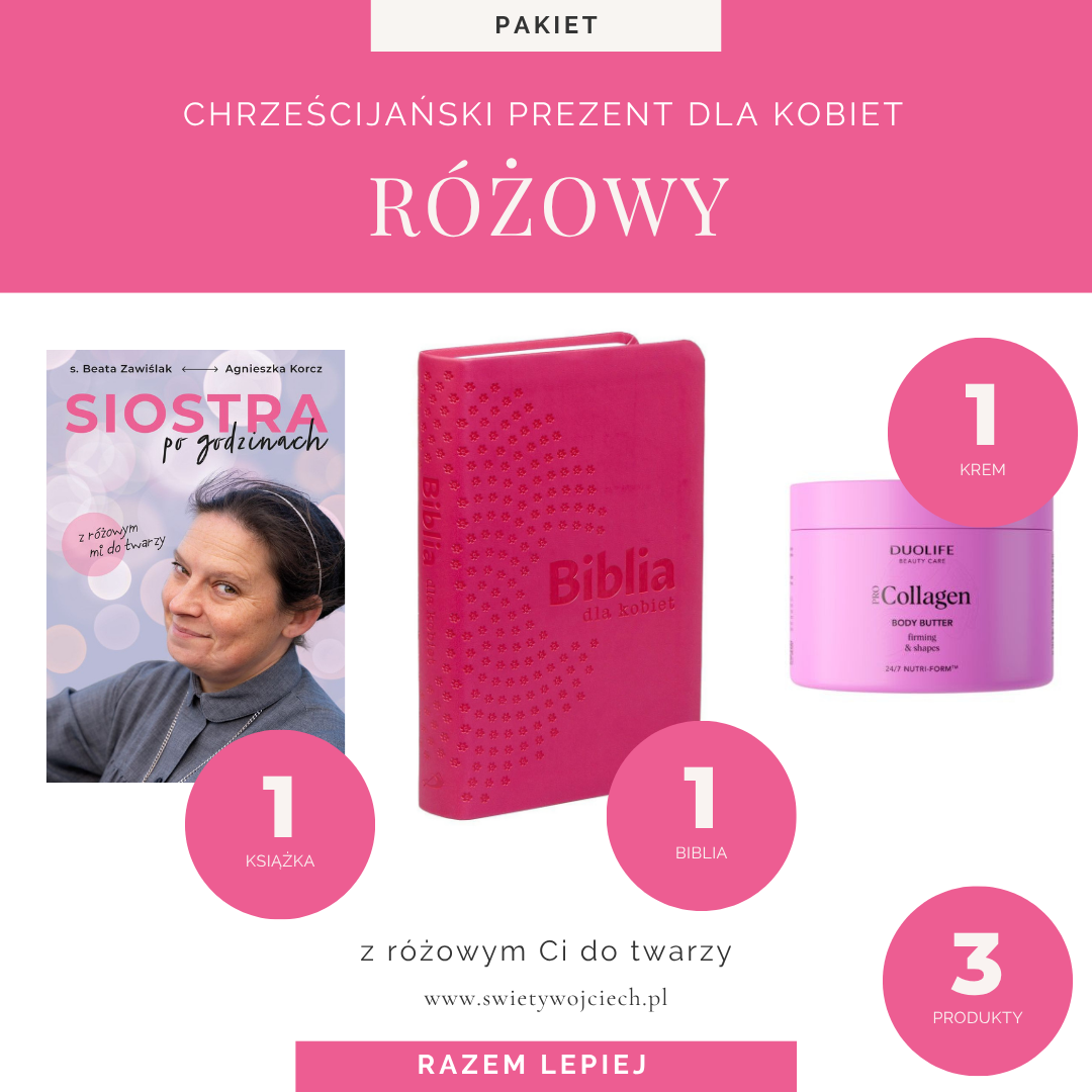 Różowy prezent dla wierzącej kobiety (Biblia + Książka + Krem)