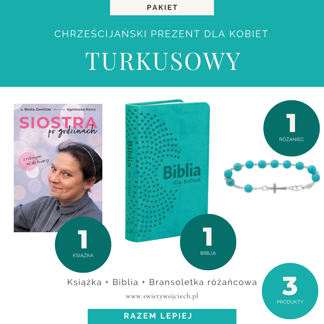 Turkusowy Katolicki Prezent dla Kobiety (Książka + Biblia + Bransoletka różańcowa)