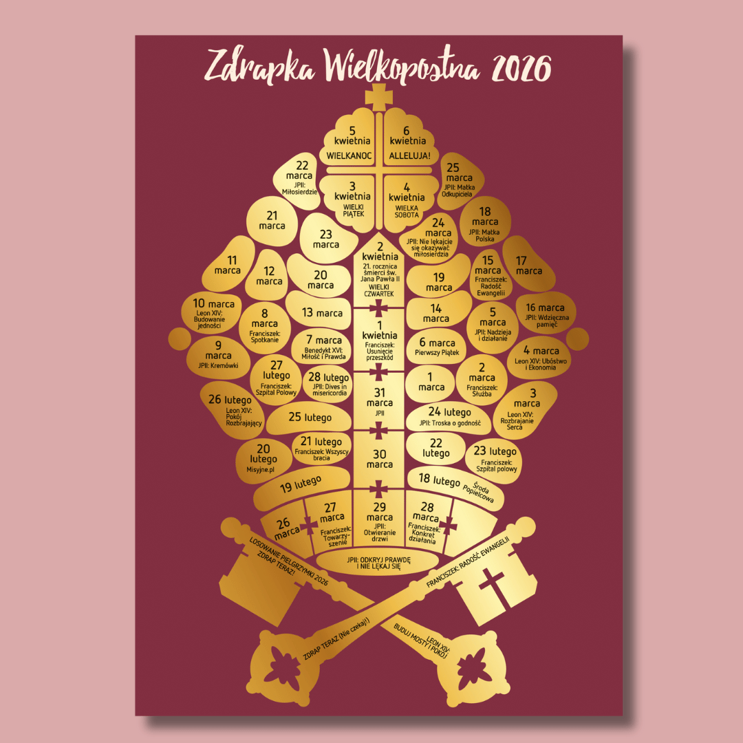 Tegoroczna Zdrapka Wielkopostna 2026 to zaproszenie do niezwykłej podróży pod hasłem „Uczeń-Misjonarz Pokoju”. W roku wyjątkowych rocznic łączymy mądrość czterech pontyfikatów w jedną, spójną drogę duchową.