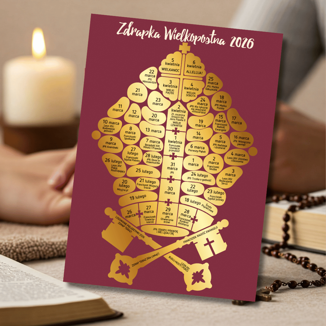 Zdrapka jest nie tylko kalendarzem, ale kompletnym programem formacyjnym na Wielki Post 2026. Kupując Zdrapkę, wspierasz dzieła ewangelizacyjne i rozwój duchowości ignacjańskiej w Polsce. Nie czekaj na ostatnią chwilę – przygotuj się na Wielki Post już dziś!