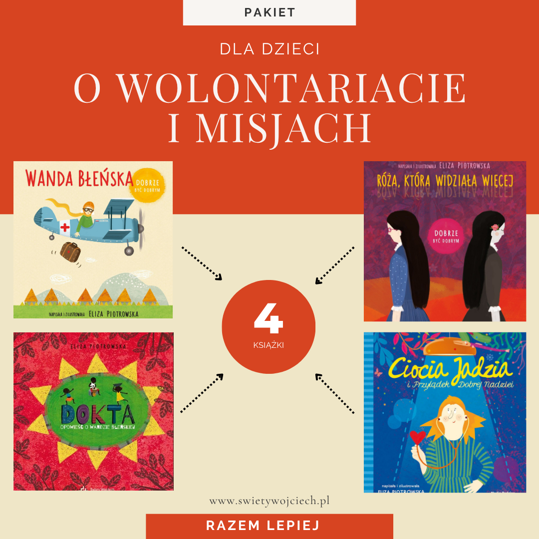 Zestaw książek dla dzieci o wolontariacie i misjach