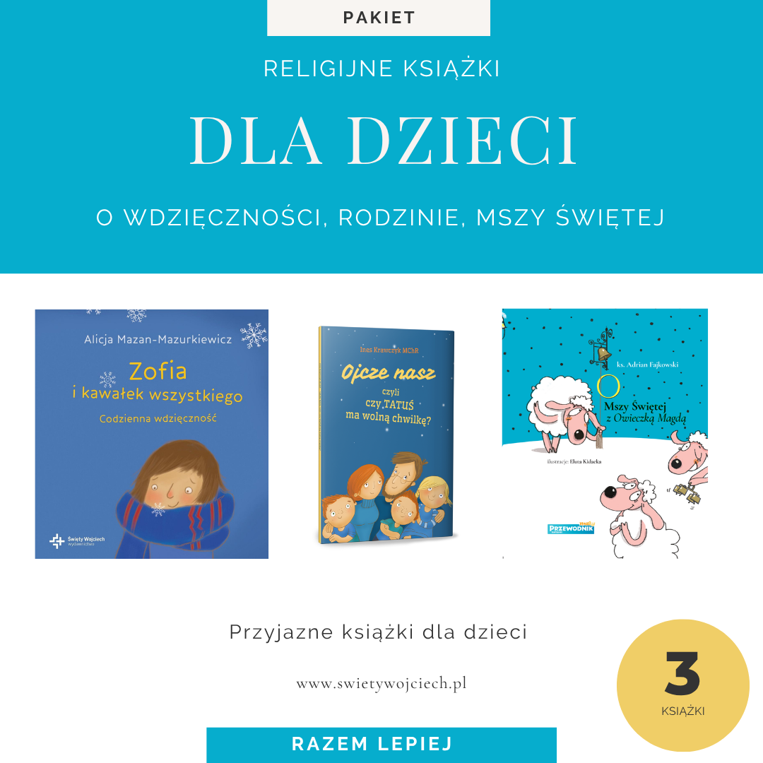 Zestaw książek religijnych dla dzieci (o wdzięczności, o rodzinie, o Mszy Świętej)